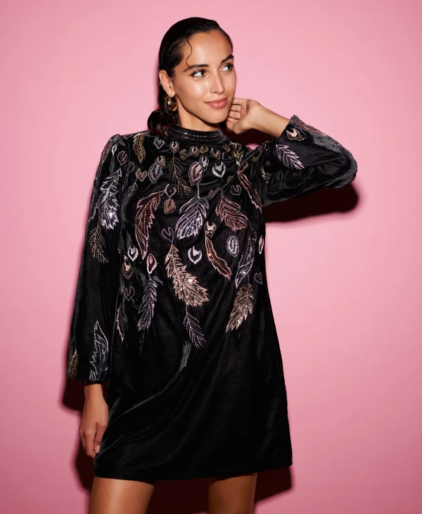 Monsoon aksomo apdailos suknelė moterys juodas apranga DPXBJ1